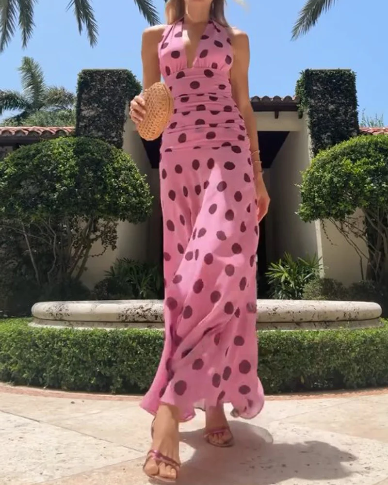 Product Name Sleeveless Polka Dot Print Waist Dress